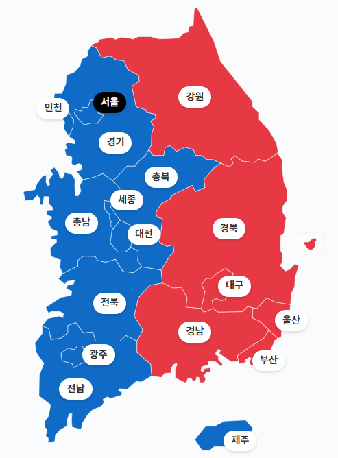 21대 대선이 서울과 충청도를 이겼을 뿐이다. 영남은 변한게 없다. 그렇겠지 계엄이 성공했으면 그들은 더 혜택을 봤을테니 말이다.