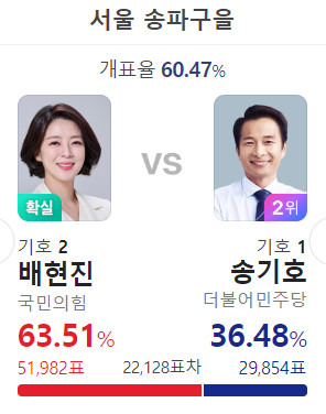 송파구에 무슨 일이 생긴거지? 친한들이라 선거 운동을 안한건가? 선거운동하고 상관 없이 찍는 이들 아니었나?