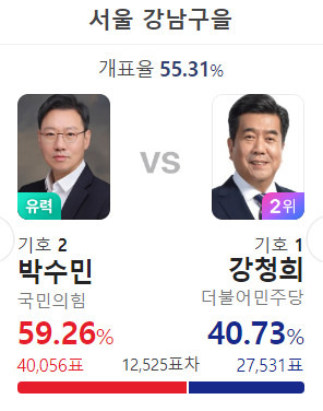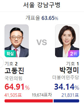 강남구에도 이준석 키즈들이 많은가보다. 민주당 표는 비슷한데...