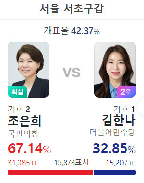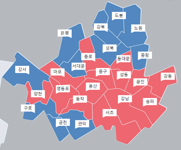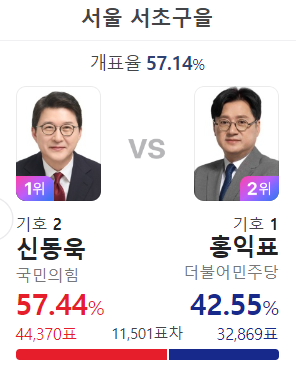 예전에 서초구민들은 자기들은 강남구와 다르다고 목소리를 높였었다. 당 보고 뽑지 않고 사람보고 뽑는다고 말이다. 총선 결과나 대선 결과를 보면 절대 그렇지 않다는 것을 증명한다.