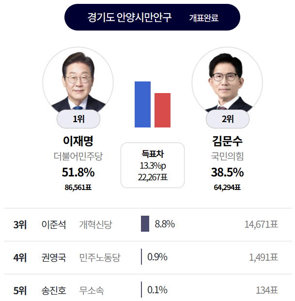 이준석은 자기 지역구에서도 표를 11.5% 밖에 받지 못했다.