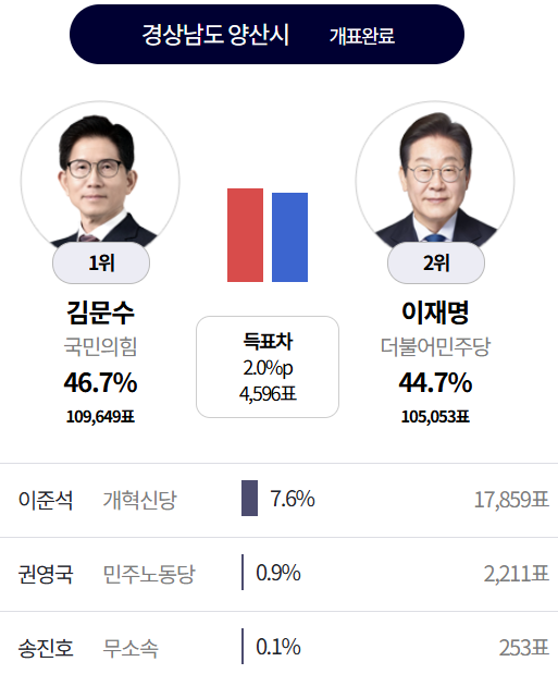 양산은 2% 정도면 빼앗아 올수도 있겠다.