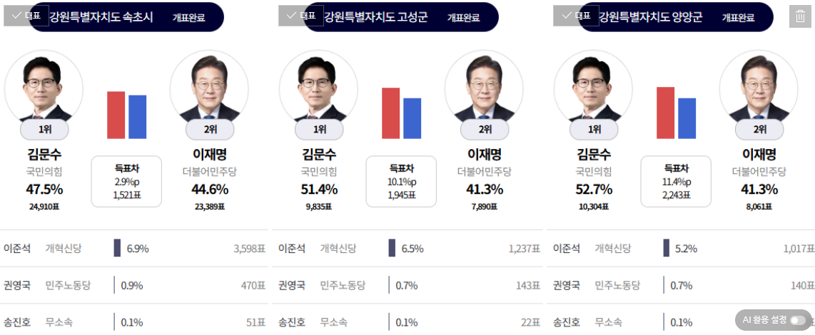 | 21대 대선 이재명 전라남도, 전라북도, 광주, 제주 지역별 득표율 모음 (3) | 2025.06.05 |