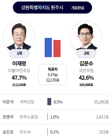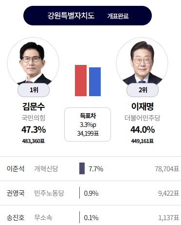 이걸 보더라도 민주당은 부산 보다는 강원도에 더 집중하는게 맞다고 본다