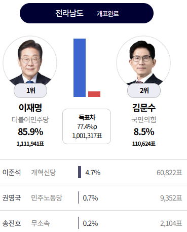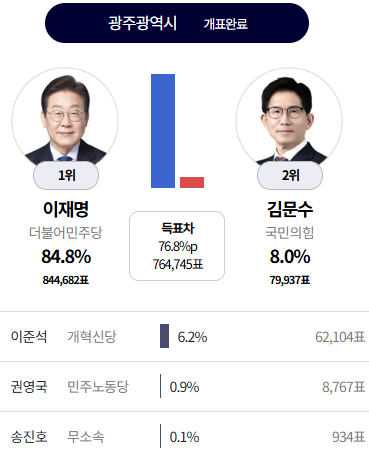 21대 대선 이재명 당선/ 지역별 득표율 모음/ 이준석 덕분에 이겼다.