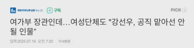 이들은 보좌관에 대한 갑질인데 국회의원 사퇴 보다는 여가부 장관 사퇴를 하라고 한다. 한국여성정치네트워크(국힘당 간 페미 신지예 영입한 곳)는 강선우 후보가 보좌관 인권을 침해했다며 사퇴를 요구한다.