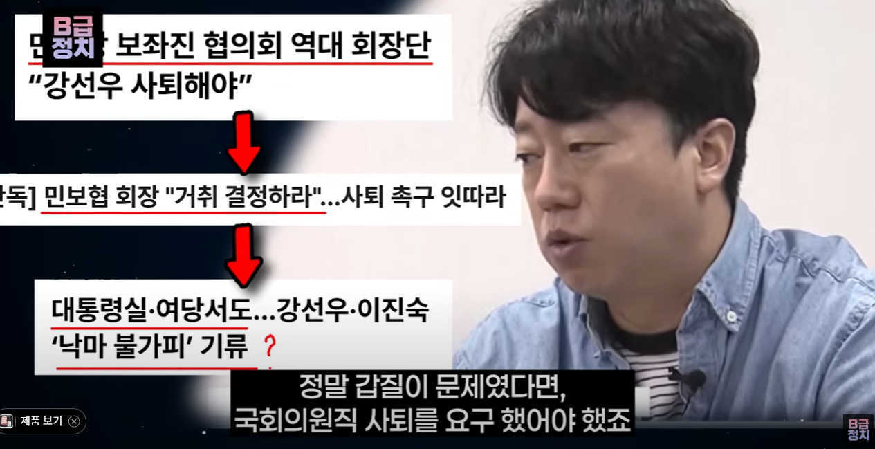 아닌가 합니다. 강선우 의원이 부당한 지시를 했었다면 그 사실 하나로 질타를 하고 사과를 하면 됩니다.